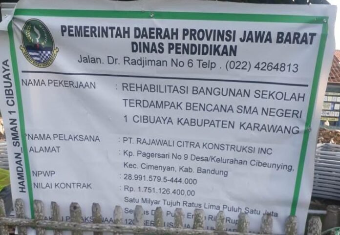 Karawang  —Tinta Merah Net— Proyek rehabilitasi Bangunan Sekolah Terdampak  Bencana. SMA Negeri 1 Cibuaya Kecamatan Cibuaya menjadi sorotan setelah ditemukan dugaan penggunaan material bangunan yang tidak sesuai spesifikasi. Pekerjaan yang seharusnya meningkatkan kenyamanan belajar siswa justru dinilai dikerjakan asal-asalan oleh pihak pemborong.(9/10/25)