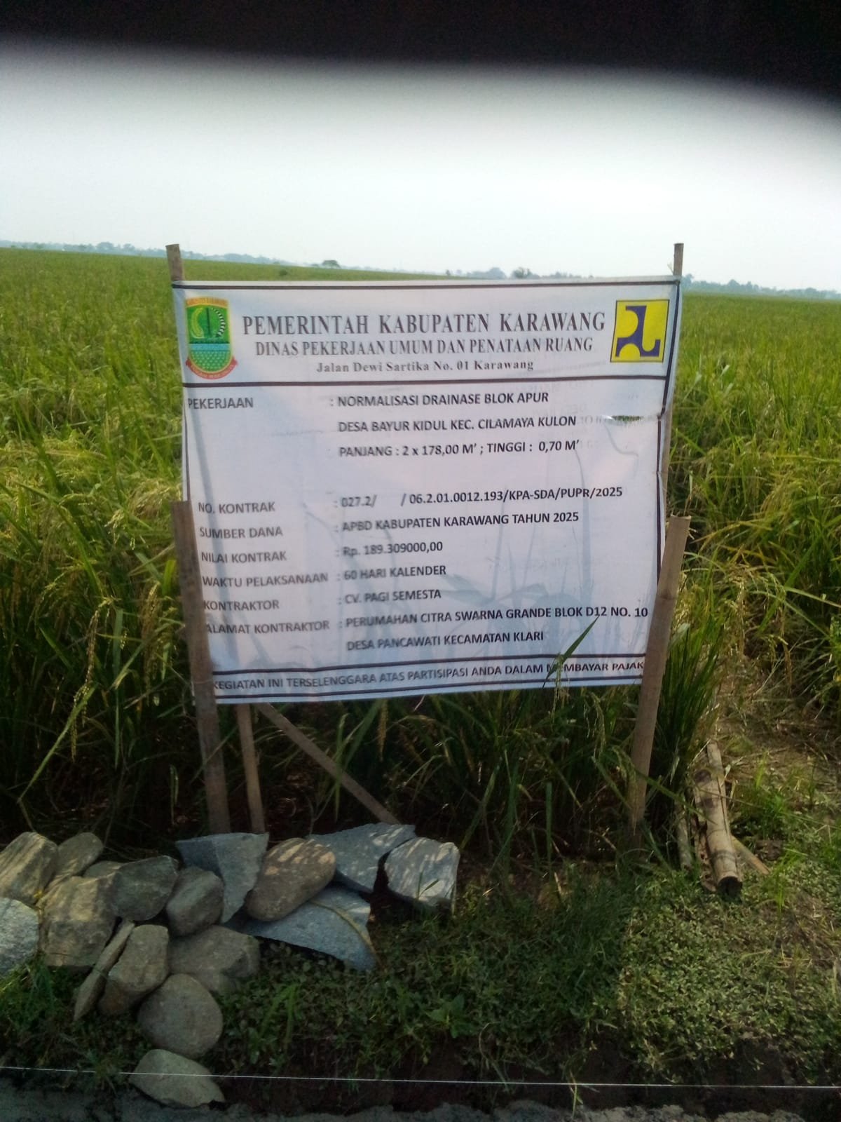 Proyek tersebut diduga dikerjakan tanpa ada nya pengawasan dan terkesan ada pembiaran dari pihak PUPR Kabupaten Karawang.