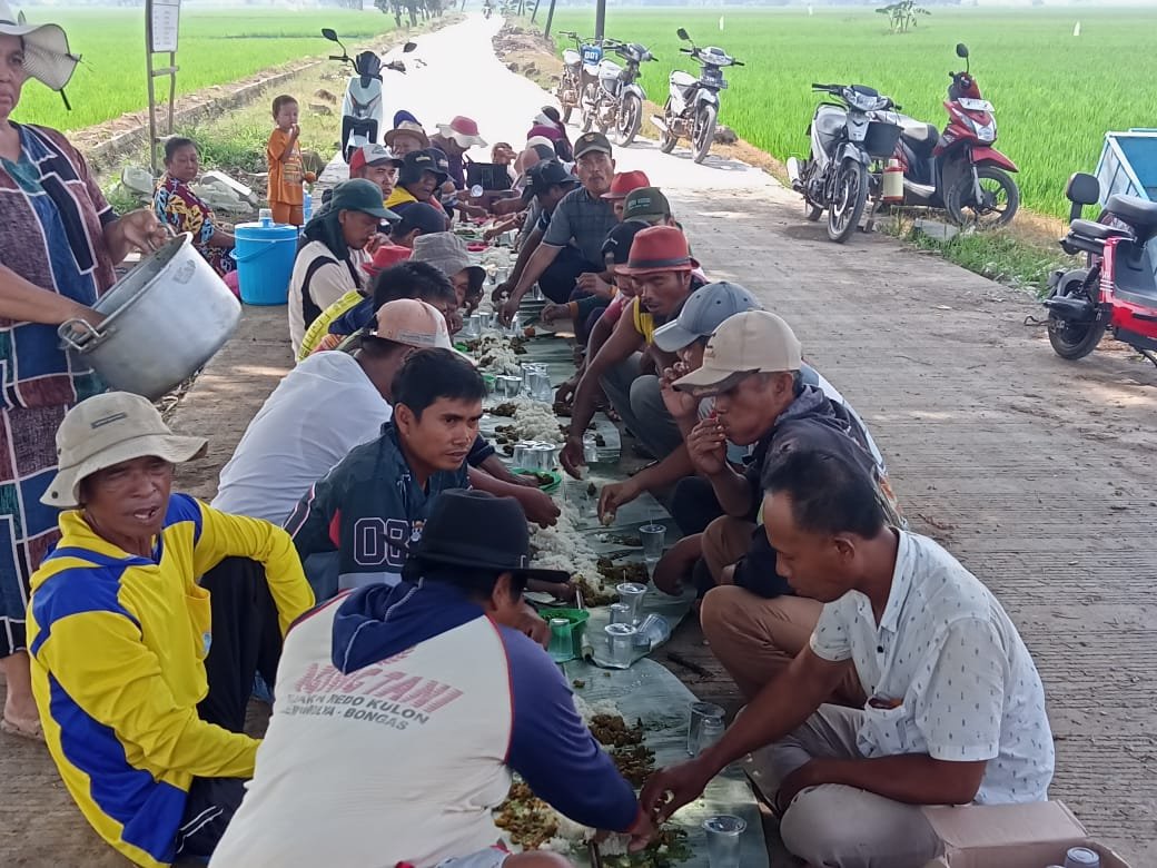 Indramayu–Tinta Merah Net.Masyarakat Desa Kertawingun Blok Cibrengkok sepanjang Ruas Jalan Cibrengkok menuju jalan plawangan. kabupaten Indramayu Jawabarat mengadakan acara syukuran makan bersama diatas jalan sebagai bukti harapan atau keluhan selama ini menginginkan jalanya mulus dan kuat telah terbukti di realisasi oleh Pemerintah Daerah ( PEMDA) Dengan Dana APBD TA 2025 Daerah.belum lama ini.