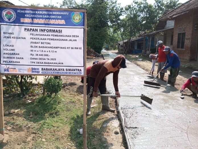 Indramayu –Tinta Merah Net– Pemerintah Desa (Pemdes) Babakanjaya, Kecamatan Gabuswetan, kembali menunjukkan komitmennya dalam meningkatkan infrastruktur desa. Di bawah kepemimpinan Kepala Desa Masirin, Pemdes memanfaatkan Dana Desa (DD) tahap II tahun 2025 untuk membangun jalan lingkungan menggunakan Cor Beton. Proyek pembangunan ini ditujukan untuk meningkatkan kualitas jalan desa serta memperlancar akses mobilitas masyarakat.