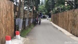 Sukabumi | Tinta Merah.net – Tersusun dengan rapi deretan pagar bambu berdiri anggun, pohonpun dibalut kain hitam dan putih di pinggir jalan, menambah suasana seperti diluar wilayah desa Sukajaya,sementara lampu hias dari anyaman bambu menggantung berjejer di atas jalan desa. Suasana itu kini menyambut setiap orang yang melintas di Jalan Raya Ciaul Pasir, Desa Sukajaya, Kecamatan Sukabumi.