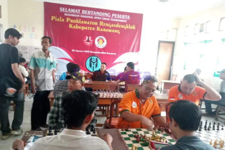 Karawang –Tinta Merah Net– Rengasdengklok menjadi saksi kemeriahan Open Turnamen Catur Piala Proklamator yang digelar di SDN Rengasdengklok Selatan 2, Kecamatan Rengasdengklok, Kabupaten Karawang, Jawa Barat, Minggu (24/8/2025). Turnamen yang diadakan untuk memeriahkan Anniversary ke-1 GPDPCC ini berhasil menyedot perhatian pecatur dari berbagai daerah, dengan total 296 peserta yang ikut ambil bagian.