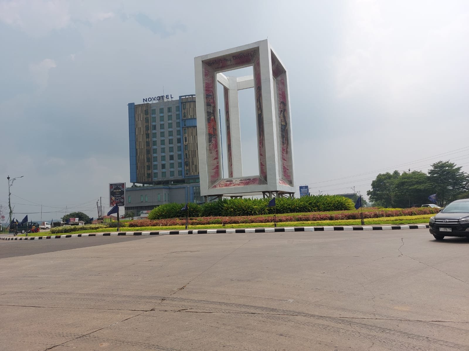 KARAWANG |TINTA MERAH NET|| Sejak Sabtu hingga Minggu (24/8/2025), bundaran Gerbang Karawang yang menjadi ikon kota dan menelan anggaran miliaran rupiah untuk penataan taman, tampak dipenuhi bendera salah satu partai politik.